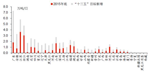 ??圖3 “十三五”期間各省新增生活垃圾焚燒處理能力目標(biāo)排序